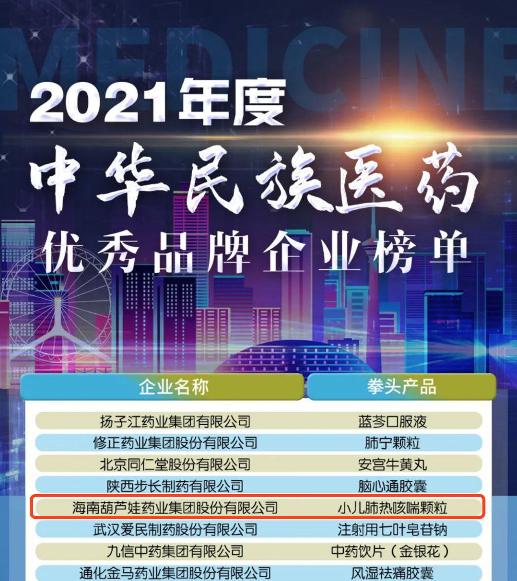 12月29日,全国工商联医药业商会发布了“2021年度中华民族医药优秀品牌企业榜单”,尊龙时凯药业集团凭借黄金单品小儿肺热咳喘颗粒(4克)实力登榜。